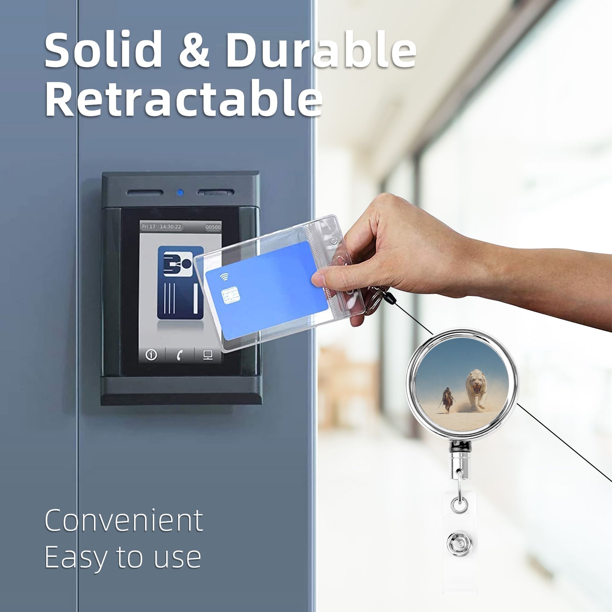 This set of metal retractable full - size badge holders includes 2 pieces, with the “Desert Warrior & White Tiger” themed pattern as the core highlight, combining practical functions with unique design aesthetics. The main body is made of sturdy metal. The diameter of the circular clip surface is 1.58 inches (4 cm), and the thickness is 0.47 inches (1.2 cm). It has a high - strength nylon cord inside, which can be stretched up to 24.4 inches (62 cm) at most, easily meeting the length requirements for daily scenarios such as card swiping and ID display. There's no need to frequently remove the ID card, making the operation convenient and efficient.