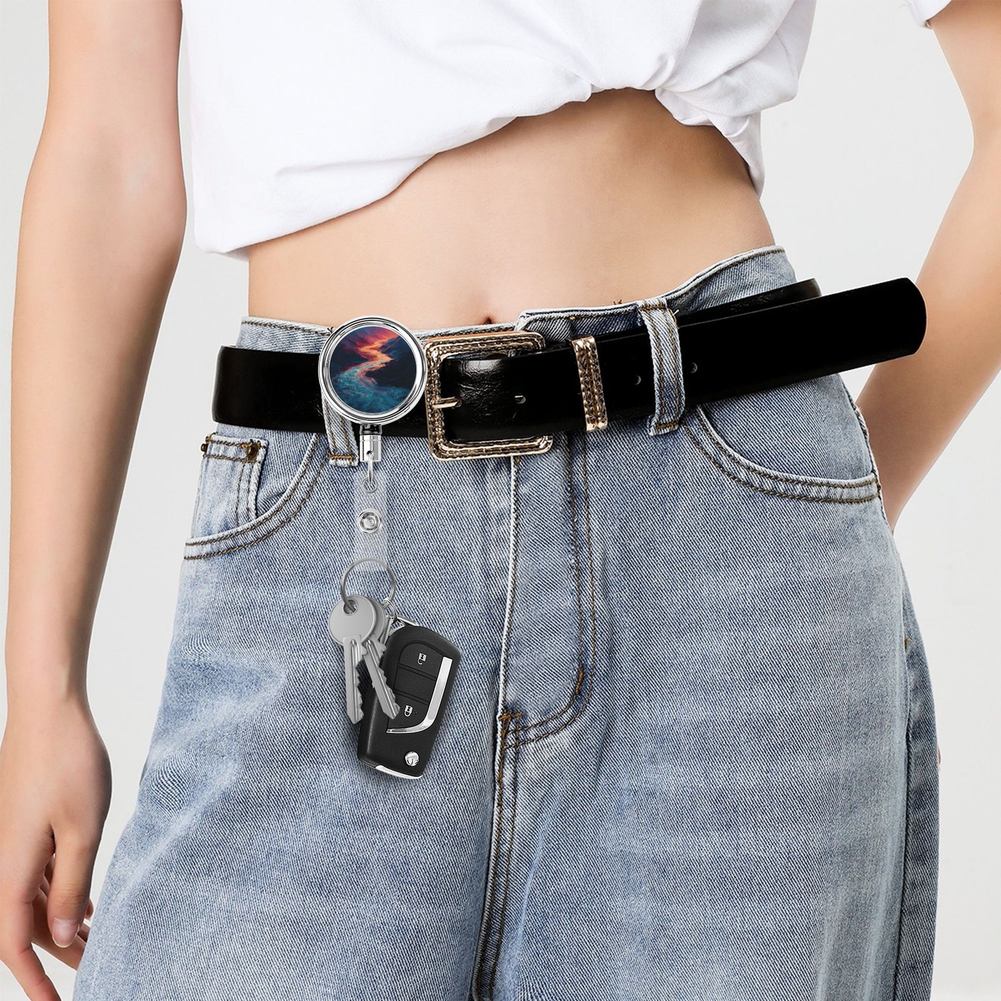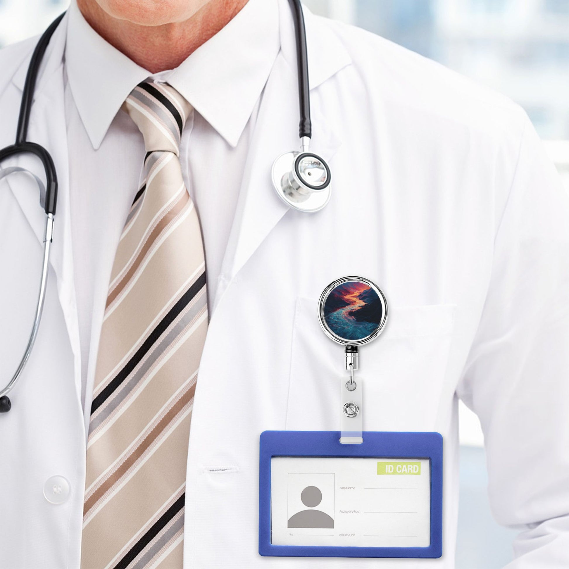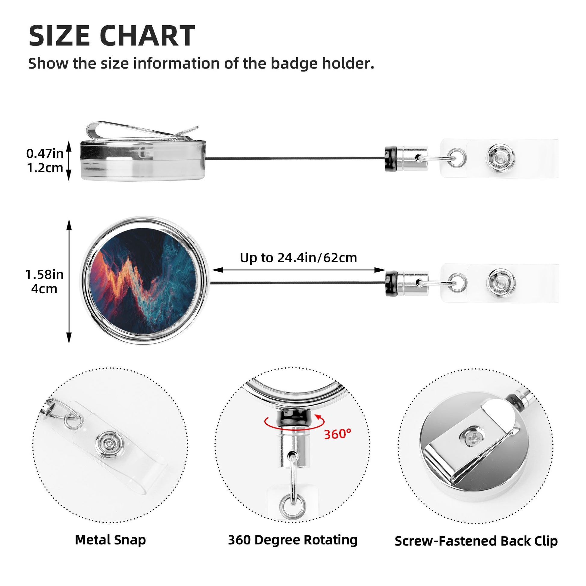 2 - Pack Metal Retractable Badge Holders - Dreamy Landscape Pattern, 360° Rotation, Durable and Portable