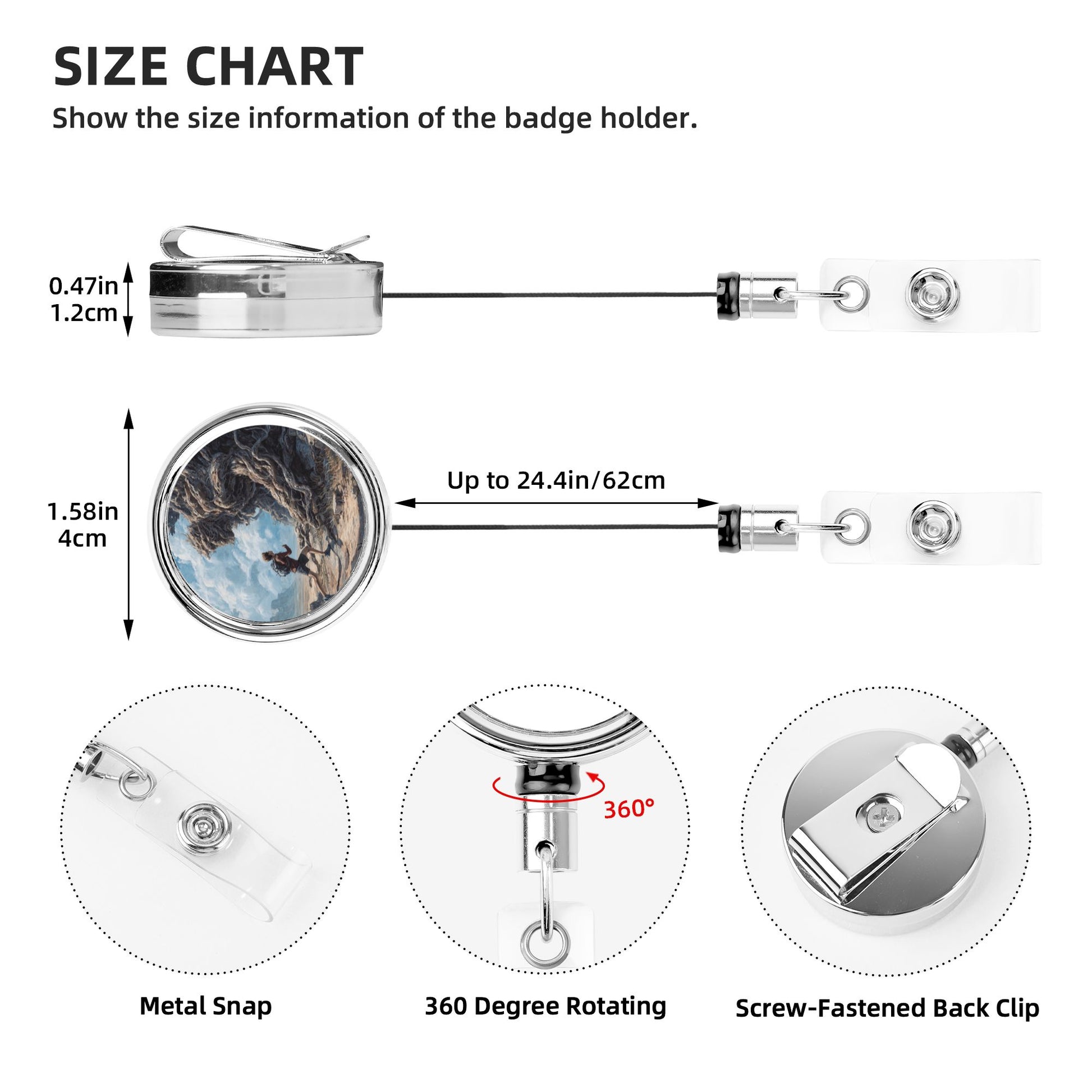 This set of metal retractable full - size badge holders, including 2 pieces, features an “outdoor adventure” themed pattern, perfectly combining practicality and personality. The main body is made of sturdy metal. The diameter of the circular clip surface is 1.58 inches (4 cm) and the thickness is 0.47 inches (1.2 cm). It has a high - strength nylon cord inside, which can be stretched up to 24.4 inches (62 cm) at most, easily meeting the length requirements for daily scenarios such as card swiping and ID display.
