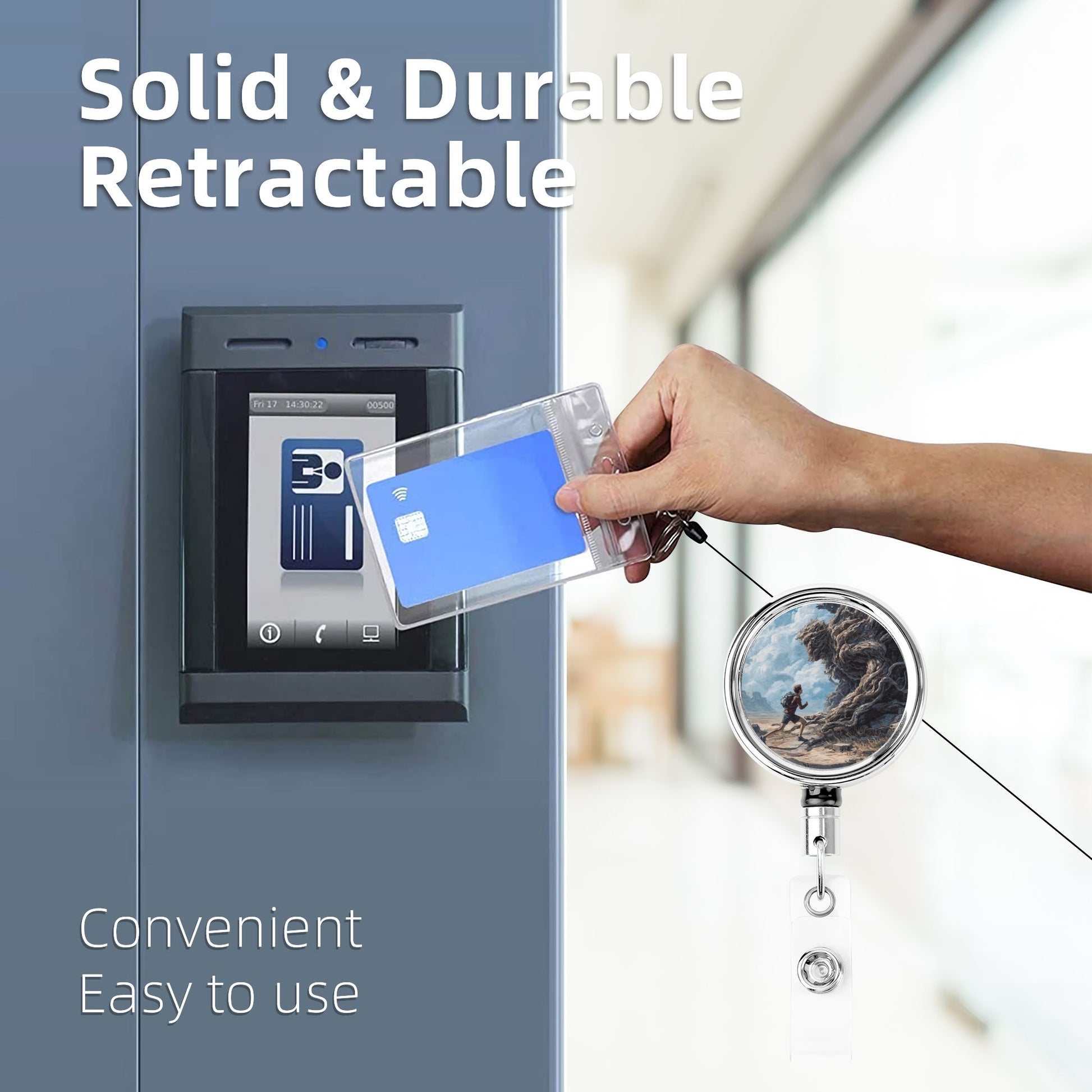 2 - Pack Metal Retractable Badge Holders - Outdoor Adventure Pattern, 360° Rotation, Durable & Portable