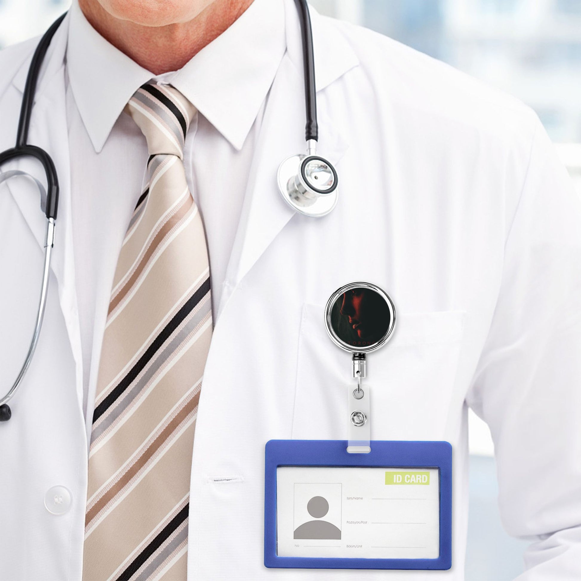 2 - Pack Metal Retractable Badge Holders - Unique Portrait Pattern, 360° Rotation, Durable and Portable