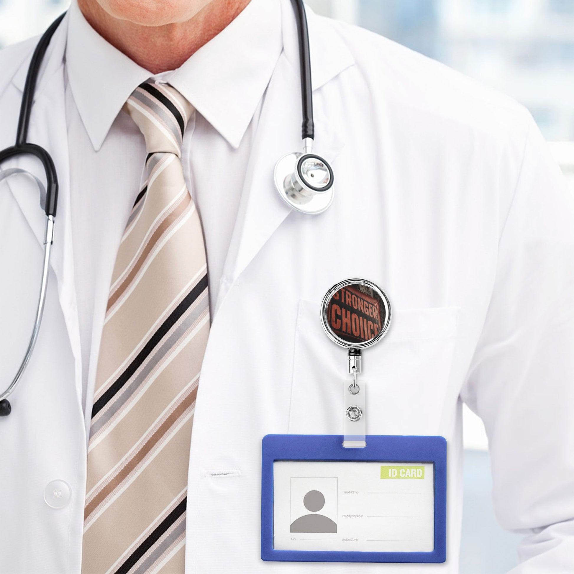 2 - Pack Metal Retractable Full - Size Badge Holders - “STRONGER CHOICE” Pattern, Durable & Portable, 360° Rotation