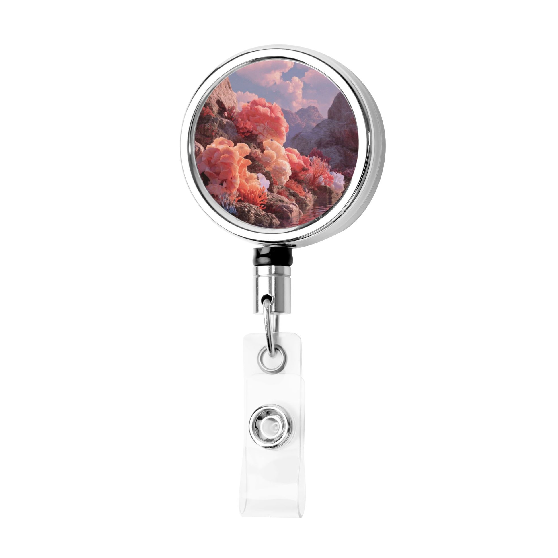 2 - Pack Metal Retractable Full - Size Badge Holders - With Artistic Patterns, Multi - Scene Application