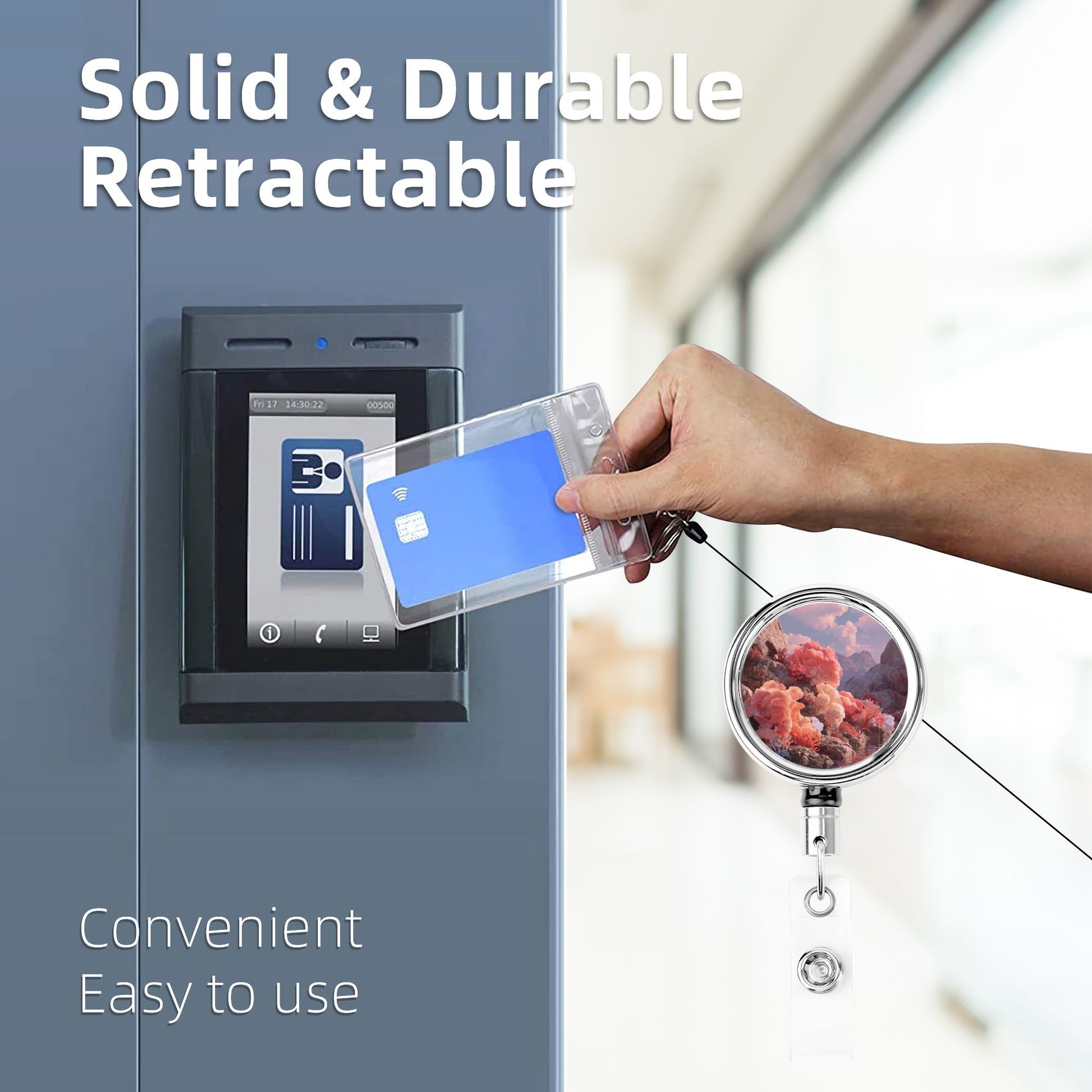 This metal retractable full - size badge holder comes in a set of 2, featuring a practical and aesthetic design. The main body is made of sturdy and durable metal. The diameter of the circular badge holder is approximately 1.58 inches (4 cm), and the thickness is about 0.47 inches (1.2 cm). The retractable cord can be extended up to 24.4 inches (62 cm), meeting different length requirements for daily card swiping, ID display, etc. The 360 - degree rotation function makes it more flexible to use. The metal snap can firmly hold small items such as ID cards and keys. The screw - fastened back clip can be securely attached to clothes, belts, and other positions, not easy to fall off. The surface of the badge holder is printed with exquisite artistic patterns, adding a sense of fashion. Whether it is used by professionals to hold work IDs, by medical staff to fix identity cards, or to match keys in daily life, it can be easily adapted. It is practical and beautiful, bringing convenience and personality to life and work.